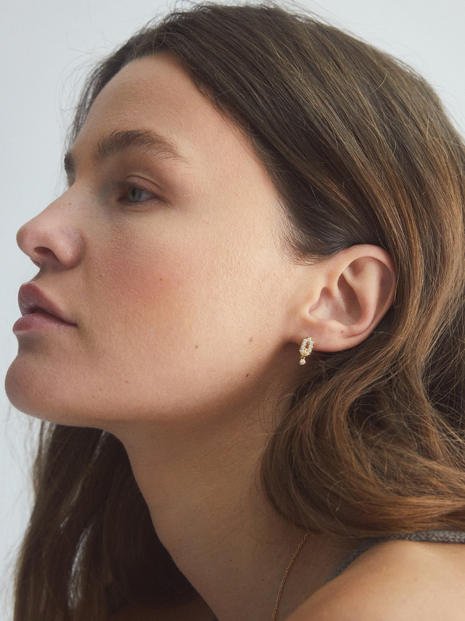 Wyrafinowane, precyzyjne linie tej biżuterii łączą charakter z łagodnością. Kolczyk przylega do skóry z naturalną elegancją, wtapiając się w codzienność, a jednocześnie zachowując moc osobistej ekspresji.