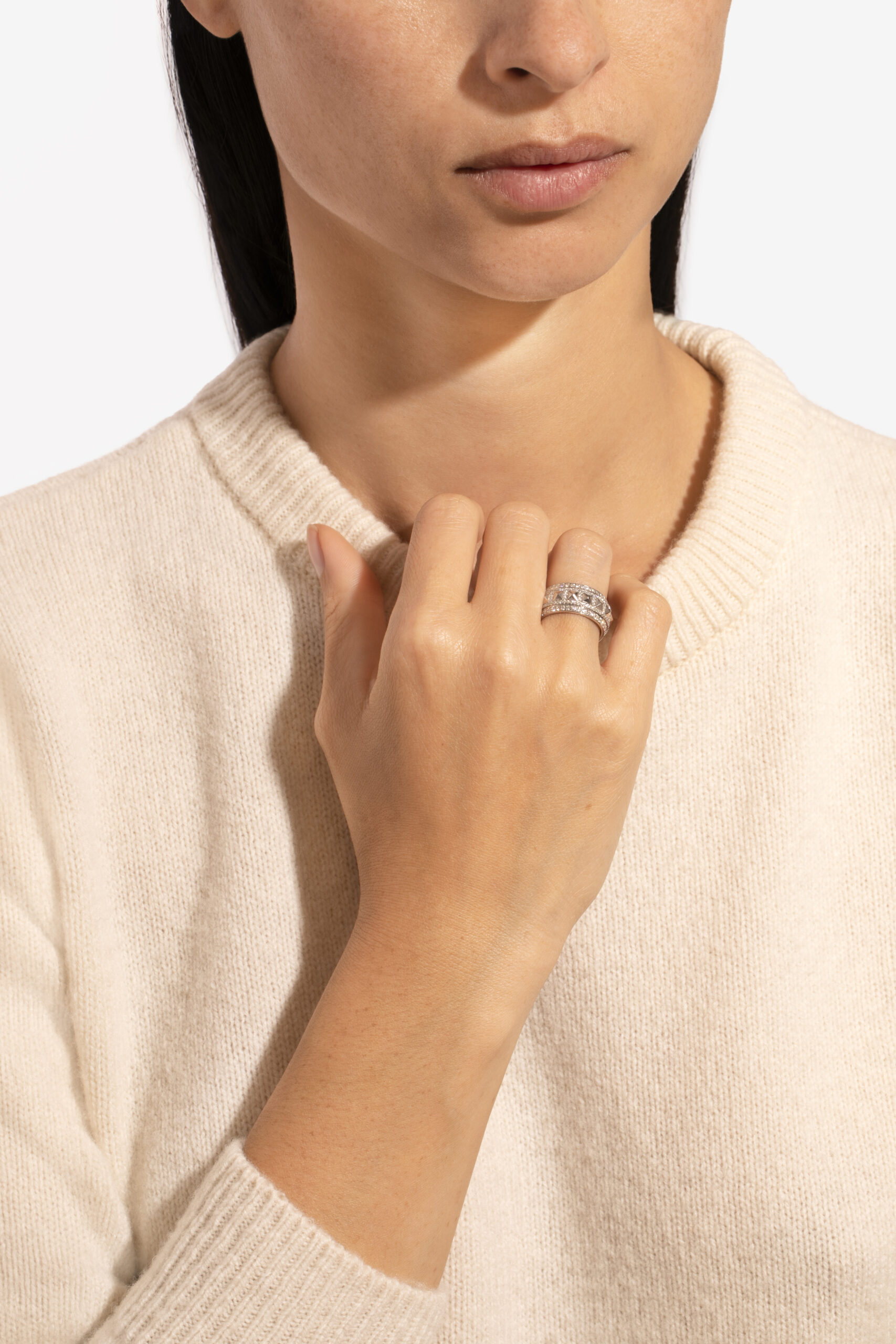 Zainspirowana architekturą brutalizmu, kolekcja Rockaway to opowieść o wyrafinowanym kontraście – surowe piękno srebra spotyka się tu z delikatnym blaskiem naturalnych diamentów. Hipnotyzująca równowaga między siłą a subtelnością, która nadaje biżuterii wyjątkowy, niepowtarzalny charakter.